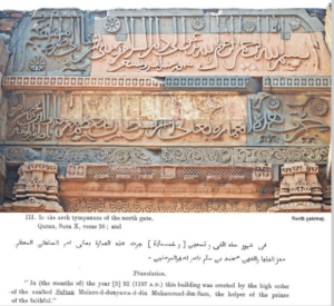 نماذج من توظيف الخطوط العربية المزخرفة في تشييد بوابة علائي (السلطان علاء الدين الخلجي) داخل حرم قطب منار، بدلهي